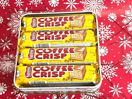 Delicious Canadian chocolate box – Coffee Crisp. Each of these chocolate box are packaged in a Tin box and comes with