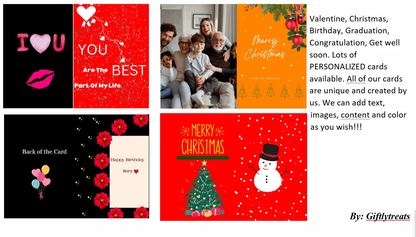 All of our gifts come with a FREE greeting card. You can request to add a picture & text to the card as well at no charge.