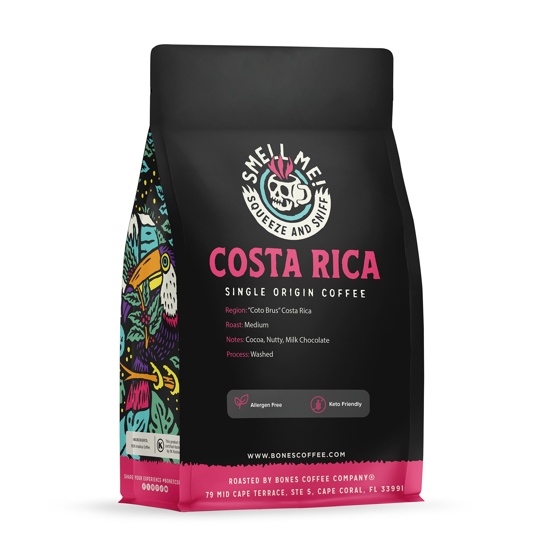 Discover the genuine flavors of Bones Coffee Company’s single-origin Coffee from Costa Rica. Made from top-quality coffee beans from the Coto Brus region, this medium roast offers a straightforward yet rich coffee experience with bright acidity and full-bodied notes reminiscent of the volcanic soil and quality controls used in each coffee plantation.