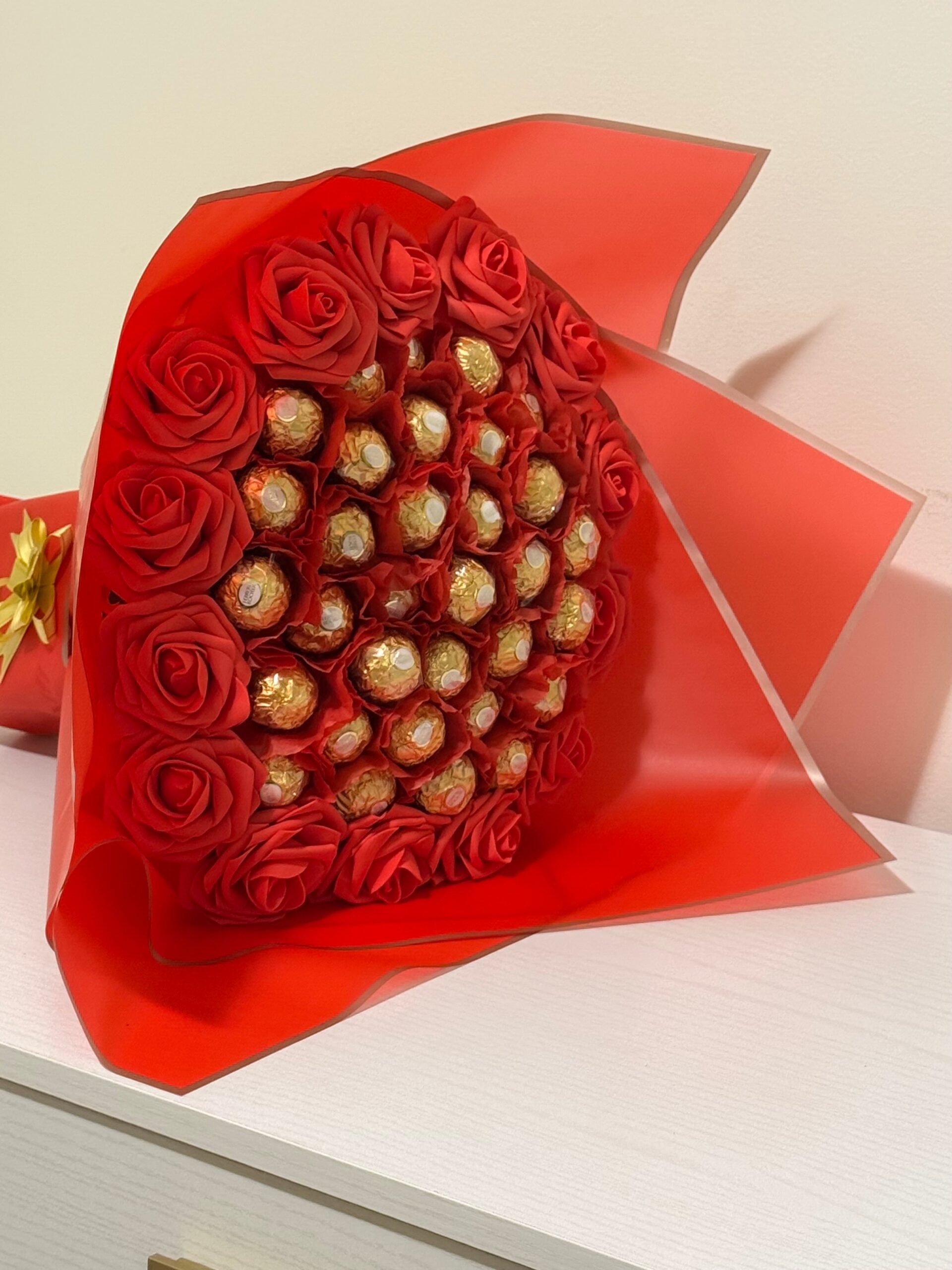 Indulge in the sweet luxury of a Ferrero Rocher chocolate bouquet. Made with the finest chocolates, this bouquet is the perfect gift for anniversaries, Mother’s Day, or any special occasion. Treat yourself or your loved ones to a delicious and unique gift. Guaranteed to satisfy any sweet tooth.