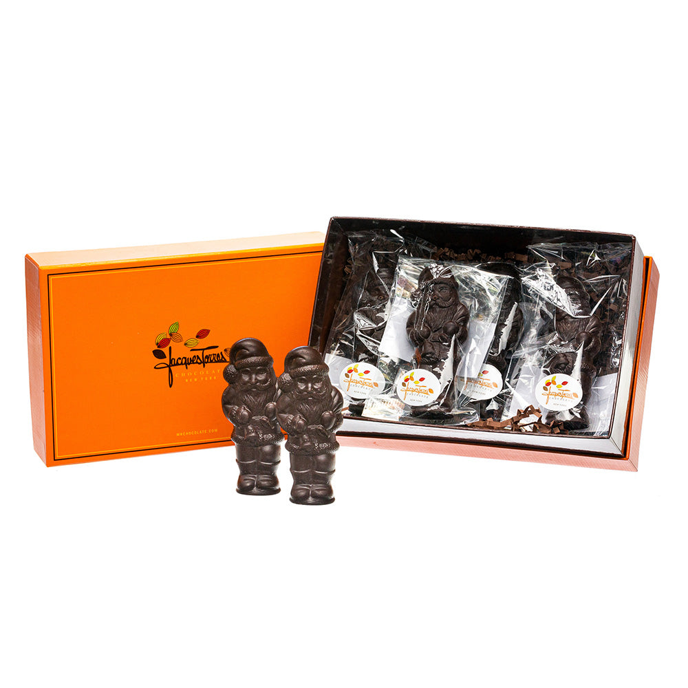 These cute hollow tiny Santas are perfect for stocking stuffers, little everyday bite size festive treats, party favors and place settings! Available in creamy milk, silky white and 60% Belgian dark chocolate.
